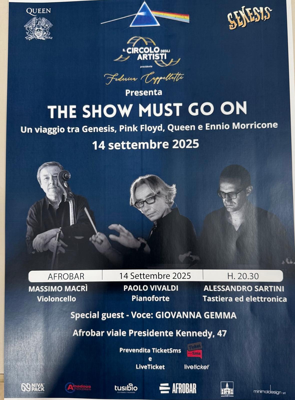 The Show Must Go On Catania – Domenica 14 settembre 2025, alle 20:30, l’Afrobar (Viale Presidente Kennedy 47, Catania) diventa un crocevia sonoro dove progressive, rock sinfonico e musica per immagini si incontrano.
