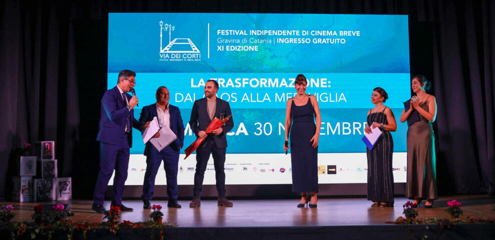 All’Auditorium Angelo Musco di Gravina di Catania, un pubblico numeroso e partecipe – tra affezionati, curiosi e giovani amanti del cinema – ha seguito le giornate del festival, tra proiezioni, incontri e premiazioni. A condurre le serate sono state Simona Zagarella e Giulia Sapienza, mentre la serata finale ha visto salire sul palco, come ospite d’eccezione, il presentatore Ruggero Sardo, grande amico di Via dei Corti.